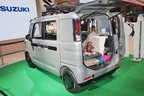 スズキブースではスペーシアをベースに開発された軽商用バンであるスペーシアベースのキャンプ・車中泊仕様車、カフェ仕様車が出展されていました。