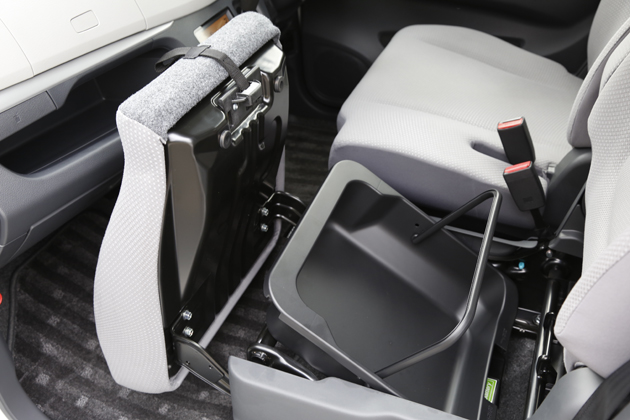 S-エネチャージ専用リチウムイオン電池は助手席のシート下に設置され、室内空間の広さには全く制約を及ぼしていない。
