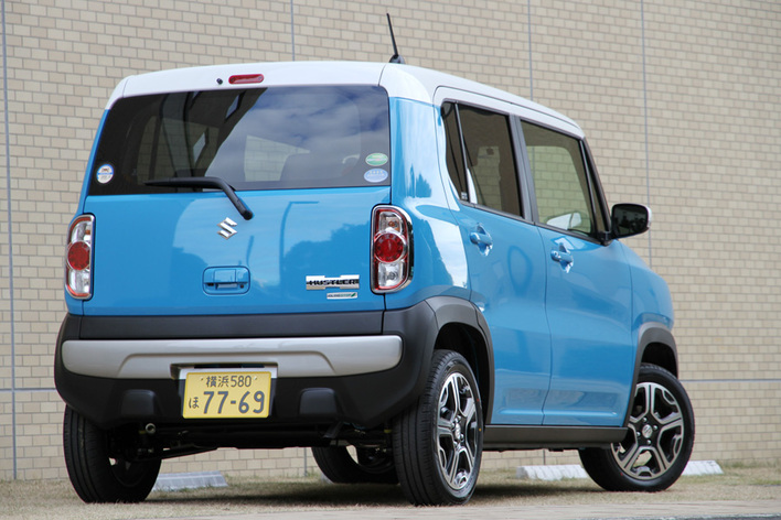 フロントマスクもヘッドライトの形状やグリルはハスラー風だが、横からみるとハスラーに比べてかなり抑揚が付けられていることがわかる。リアも同様に抑揚がつけられ、反射板がバンパー埋め込みになるなど、ハスラーとは異なるイメージとなっている。