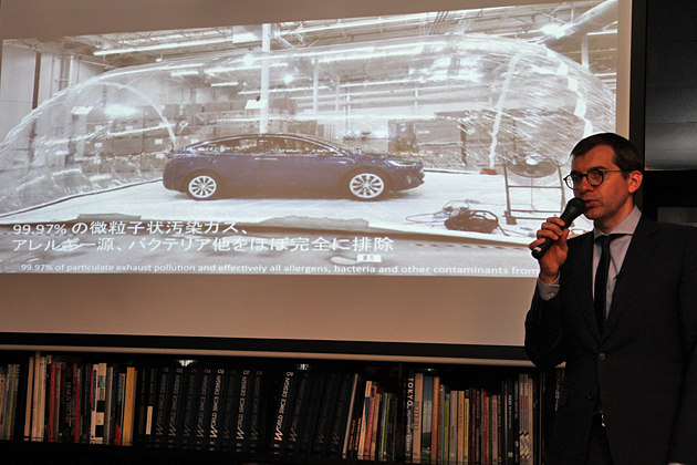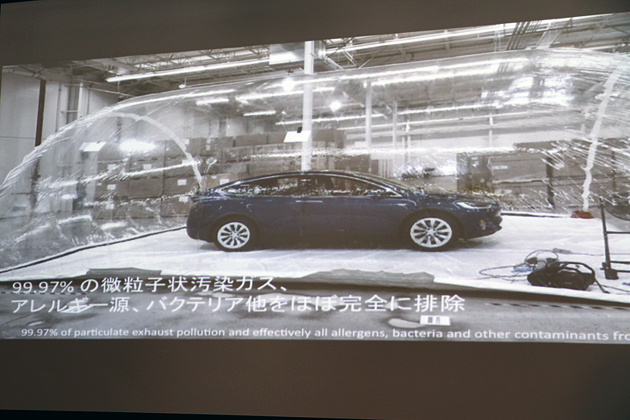 テスラでは「モデルX」に続き「モデルS」についても、新たな空気清浄システム「HEPAフィルター」を採用した。PM2.5などの空気汚染物質や花粉などの微粒子が車内に進入するのを防いでくれる。