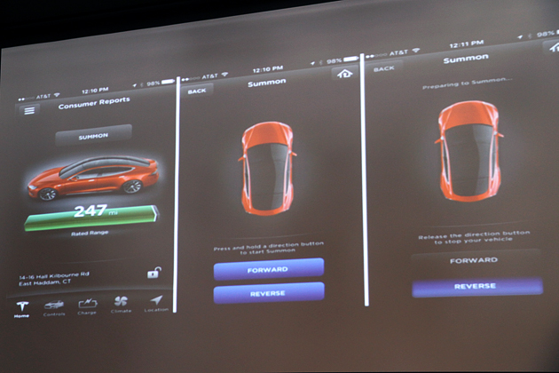 リモート駐車機能「Summon(サモン)」のスマートフォン画面(イメージ)