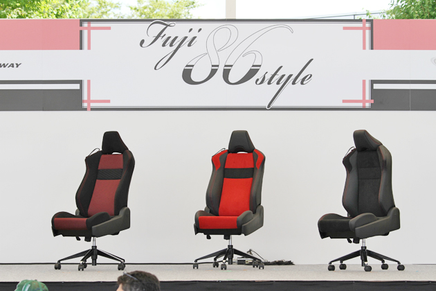 なんとトヨタ86オリジナルシートを使ったデスク用チェア(今のところ非売品・・・らしい)。