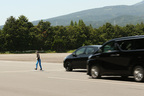 この日は他の参加者とともに何人かの班に分かれてテストし、自分の順番でないときも後席に同乗したり、他の参加者の走行を外から見ることができて、一見あまり難易度が高くなさそうに感じたのだが、いざ運転席に収まって実践すると、わかっていても本当に急に事が起こる印象でドキドキした。