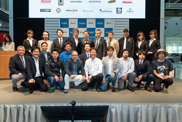 発表会では俳優の哀川翔氏がチームの体制を発表したほか、チーム代表のFLEX株式会社 代表取締役社長の藤崎孝行氏からオフィシャルパートナー企業の発表が行われた。