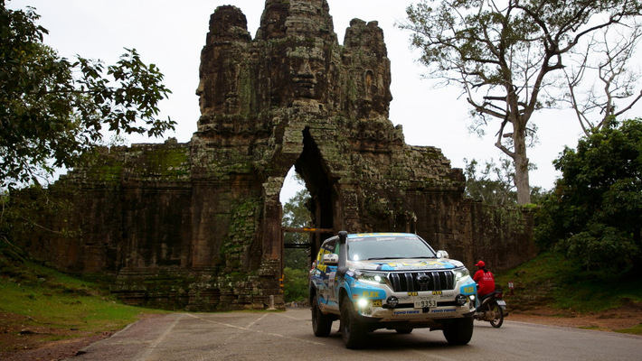 競技開始から3日目は陸路で国境を越える日だ。ホテルを出て100km走った後にタイ国内で最後のSSが行われ、80kmのリエゾンを経てカンボジア国境へ到達。出入国の手続きを行って160km先のシェムリアップ、つまりアンコールワットのある町へと向かうのだ。