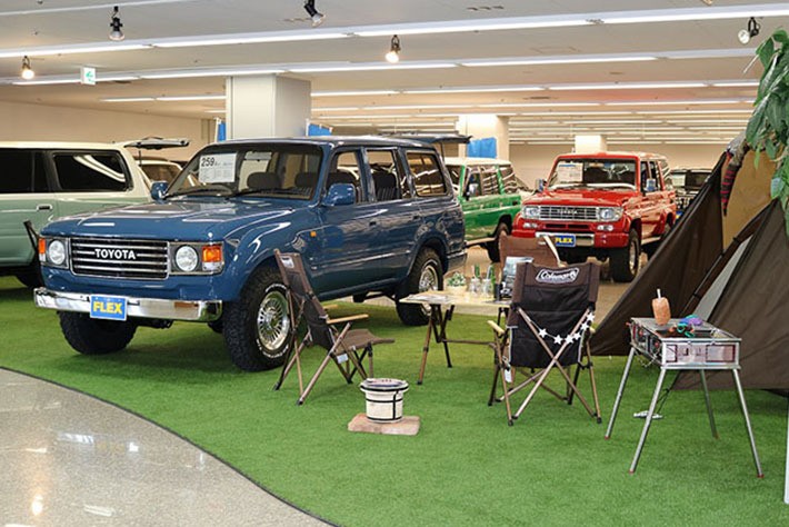 ランクルの専門店を全国に展開しているFLEXは、現行モデルのランクル300やランクルプラド150はもちろん、ランクル200/100やランクルプラド120、そしてそれ以前のモデルも数多く取り扱っています。新車や100項目の点検を実施した中古車の販売、メンテナンス、カスタムやチューニング、そして車検まで、ランクルに関するすべてのことが守備範囲です。