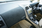 インテリアもシートは本革+スウェード調人工皮革アルカンタラを組み合わせた。さらにメーターフードやグローブボックスのフタ、ドア内張りもアルカンタラを配した。その雰囲気はこれまでの国産車にはない、独特の高級感だ。