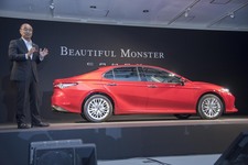 「セダンというものは、もともと背が低くてカッコよく、しかも走りも非常に良いという高いポテンシャルを持っている。今までのセダンというものは、機能的価値のアピールが強いものが多かった。しかし、今回のカムリは、見て、乗って、ワクワクドキドキできるクルマに仕上がっています。