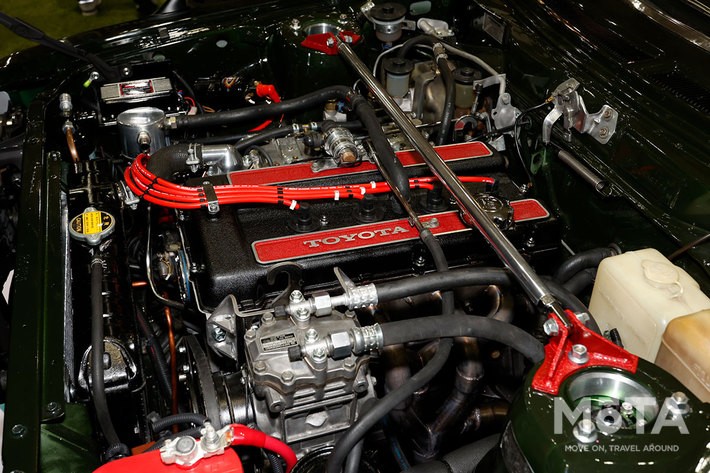 さらに単なるレストアだけではなく、オーバーフェンダー・チンスポイラー・ハヤシレーシングのホイールの装着といった外観のカスタムも実施。エンジンのボアアップやセリカXX(ダブルエックス)に搭載されていたトランスミッション(W55型)への換装、ブレーキの強化などのチューニングも行われているという。