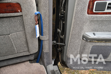 まず車内には後席から手の届く範囲にあるBピラーにちょっとした巻物があり、これは何のためのものかというと後席に座った要人がくつろぐ際の靴の脱ぎ履きに使う靴ベラを置くスペースとなっている。