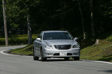 新しいマジェスタに乗り込んでドアを閉めると、室内にはしんとした静かさが広がる。走行中の騒音レベルも極めて低く、エンジン音やロードノイズはわずかに入ってくるだけだ。こうした外界と遮断された感じの静粛性の高さは、クラウンが伝統としてきた部分であり、今回のマジェスタにもしっかり引き継がれている。走りの性能もさらに向上した。今回のモデルでは4.3Lに排気量アップされたV8エンジンが搭載されており、そのトルクの余裕が気持の良い走りを実現する。中低速域ではフレキシブルで滑らかな走りを実現し、いざアクセルを踏み込めば力強い加速を実現するV8エンジンは、正にトヨタのフラッグシップならではのものだ。新開発の6速 ATもショックの少ない滑らかな変速を実現すると同時に、市街地から郊外などでの中速域では余分な変速をすることがなく、なかなか良くできている。改良された電子制 御エアサスペンションは、乗り心地を重視した柔らかさながら、安定感も上々のレベル。コーナーではそれなりにロールするものの、不安を感じさせないので安心して走 り抜けて行ける。