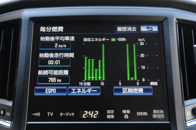 トヨタ クラウン「ハイブリッド アスリートG」ハイブリッド専用画面