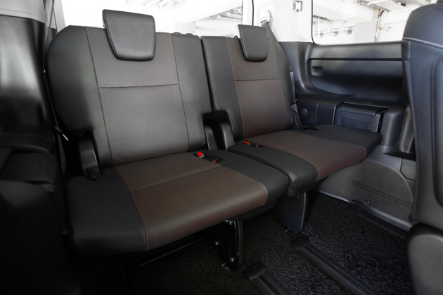 左右独立型の7人乗り仕様とは違い、写真の8人乗り仕様車は開放感があり、こちらを好むユーザーも多いのでは。また7人乗り仕様に比べお安いのも魅力だ。