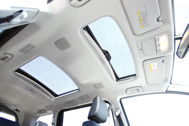 トヨタ エスクァイア Gi[2WD・ガソリンモデル] ツインムーンルーフはガソリンモデルのGiにのみオプション設定。重量増のため、ハイブリッドモデルに装着することはできない仕様だ。
