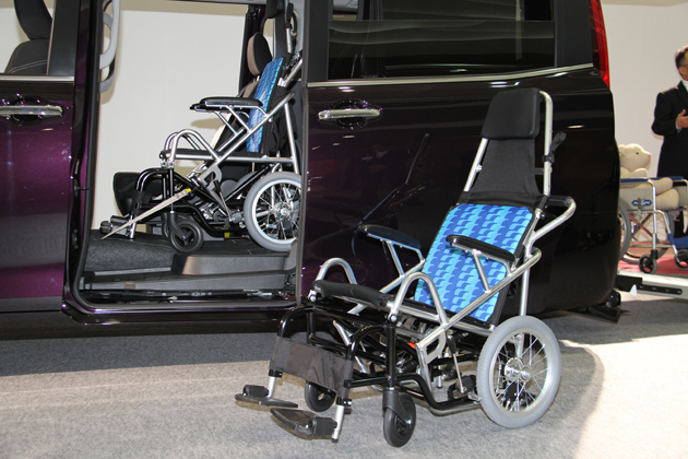 トヨタ エスクァイア 福祉車両(ウェルキャブ) 車いす仕様車(タイプI)“車いす2脚仕様” Xi [2WD・ボディカラー:ボルドーマイカメタリック・オプション装着車] 専用設計のウェルチェアはチルトダウンにより背もたれを倒すことも可能。走行時の上半身の揺れや身体の前すべりを防ぐ効果がある。