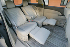 インテリアの仕様はラグジュアリーそのもの。7人乗り、8人乗りともゆったり座れるシートが用意されるが、特に2列目シートが独立したキャプテンシートとなる7人乗りが豪華な印象。3列目のシートを床下に収納して2列目のシートを後方にスライドさせると、リムジンのような広い空間が生まれる。