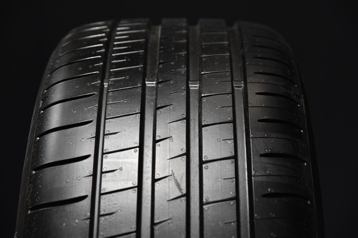 R35GT-Rが純正採用するハイパフォーマンスタイヤは新技術の採用でロゴがくっきり/ダンロップ
