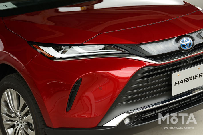 シグネチャーイルミグリルやフロントスポイラーなどにLEDを効果的にレイアウトし、ワイド&ローフォルムを強調。新型ハリアーのダイナミックさと先進性をアピールする美しいスタイルに圧倒される!
