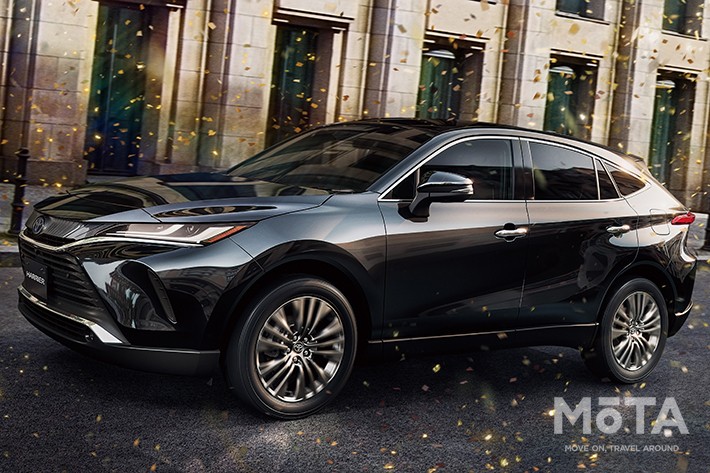 2020年6月に登場した4代目となる新型ハリアーは、スタイリッシュかつたくましいシルエットの流麗なクーペフォルムのエクステリアに、馬の鞍をイメージした個性的なセンターコンソールのデザインをはじめ、調光ガラスを用いた電動シェード付パノラマルーフをトヨタ初採用するなど、インテリアも感性に訴える上質で心地よい空間としている。