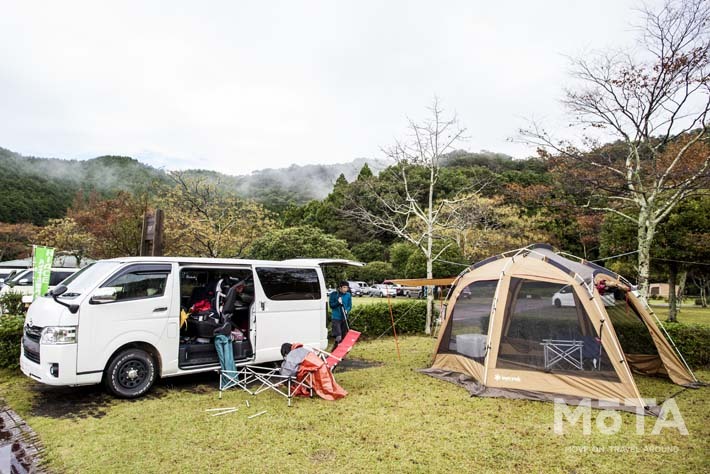 数々のハイエースのオリジナル仕様を展開している有名ショップといえば三重県のダイレクトカーズがなんといっても有名。車中泊仕様は当然のこと、自転車乗り、キャンプ好き、ペット愛好家…あらゆる嗜好の方が楽しめる仕様を作り、最近では本格バンコンまでオリジナル製作している、まさに三重を代表するハイエースのカスタムビルダーです。そんなダイレクトカーズはお客様イベントにも本当に積極的。今回は熊野灘に面した海まで0分! という絶好のロケーションが楽しめる三重県の人気キャンプスポット「孫太郎キャンプ場」を使って行われたダイレクトカーズ主催のキャンプ大会の模様をレポートしたいと思います。