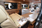 ただでさえ広大な室内空間を持つハイエースだが、IFFUブースではさらにポップアップルーフを備えた車両を展示。8人乗り仕様でもポップアップルーフを備えることで、シートを活かしたままの車中泊もOKとなっている。