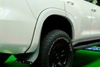ボディパーツでは3mm、5mm厚から選べるジュラルミン製スキッドプレートや、9mm厚(車検対応)のエアロフェンダーカバー、ヒットメンバー取り付け時にカットするバンパーを覆うヒッチメンバーカバー(純正色塗装済み)、オーバル左右出しにするテールパイプ・タイプ2、床下回りの各ガードなど、150プラドに向けた専用パーツを多くラインアップしていた。