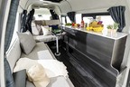 NH#01は、2列目にフルフラットや後ろ向きシートを備え、後方の右側にキッチンと収納、対面する形でマットというレイアウトで、移動時は乗員全員が前向きに座ることができる。