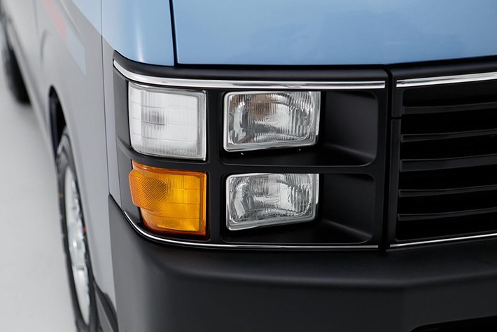 どちらのヘッドライトも、昔のハイエース(50系)や、80年代まで採用されていたレンズ・反射板・発光部が一体化したシールドビームのヘッドライトを使用し、ライト周辺のパーツも当時のテイストで再現しています。