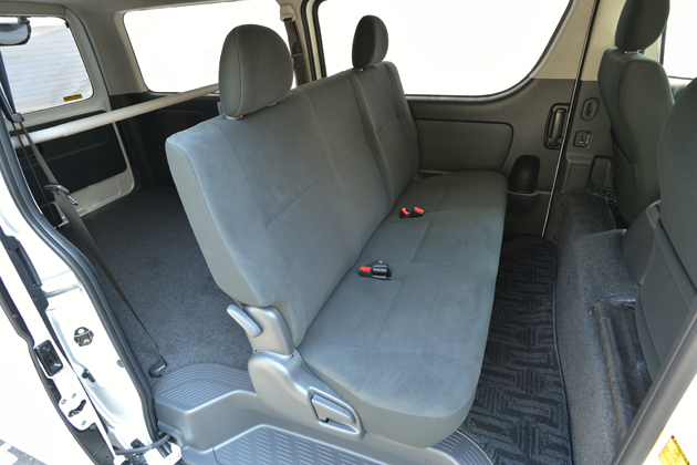 「スーパーGL」のリアシートは、商用バンとは思えないほどの立派さ。個人ユーザーが平日は仕事に、週末は家族や仲間を乗せてレジャーの道具として使うのに最適なため人気が高い。