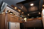ウッドとレザーを使った上質な内装はラグジュアリーなムード満点。リチウムイオンバッテリーを搭載して最大80Aに対応し、電子レンジなどの利用も可能だ。