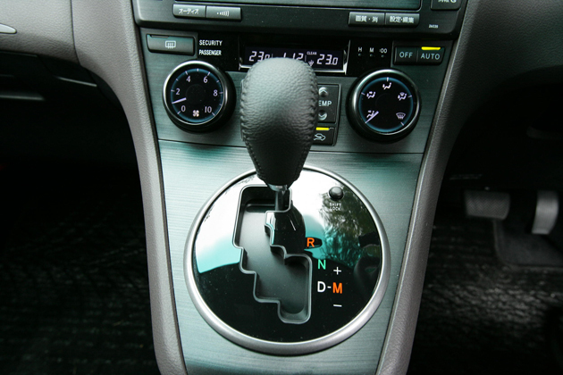 シフトはゲート式を採用。マニュアル感覚の操作性が味わえるよう全車に標準設定。240G、240Fには本皮巻きシフトレバーノブを、350Gには本革巻き+加飾オーナメント付シフトレバーノブ+シフトレバーメッキリングを採用し、ラグジュアリー感を高めたシフトデザインが施されている。