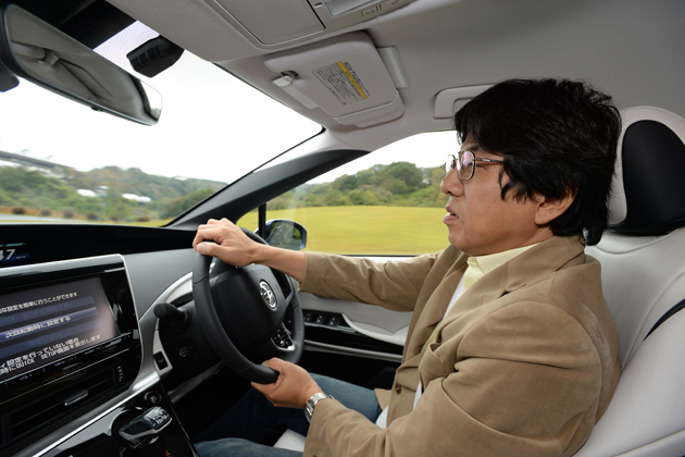 トヨタ 燃料電池自動車(FCV)MIRAI(ミライ)を試乗中の自動車評論家 渡辺陽一郎氏2