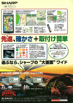 実はカーナビゲーションのディスプレイをタテ型にする発想はかなり前に登場していた。カーナビゲーション普及の黎明期であった1996年にシャープは「6E-GP3」という製品を発売し、この時に初めてディスプレイを縦に回転して使うアタッチメントを用意して話題となった。当時はまだ縦方向が長い4:3のディスプレイだったが、それでもディスプレイをタテにすれば進行方向のエリアをさらに広く表示できる。その後、ディスプレイ比率を16:9とした「7E-GP5W」へと引き継がれたが、当時、企業スローガンを「目の付けどころがシャープでしょ」としていた同社らしい新発想だったというわけだ。