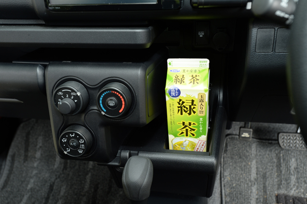 [ドリンクホルダー+照明付センタートレイ]ドリンクホルダーの蓋を開けると1リットルの紙パックも入るというから凄い。