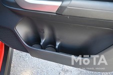 そして左右のドアポケットにもカップホルダー2つずつ設置されている。ほとんどの車種のドアポケットには1つしかカップホルダーが設置されていないために、非常に珍しいのだ。ちなみにここまでは全グレード共通である。