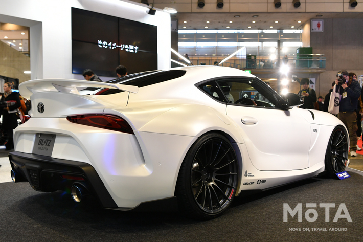 東京オートサロン2020で、チューニングシーンを牽引するメーカーのひとつであるBLITZが出展していたのは、新開発のパーツを多数装備したスープラ。