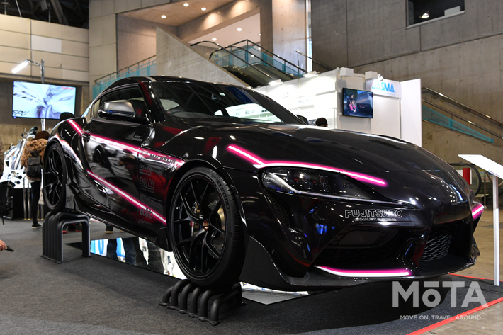 同じく東京オートサロン2020では、エキゾーストシステムの老舗であるFUJITSUBOから、試作品となるEXH PERFORMANCE UNITを装着したスープラが出展されていた。