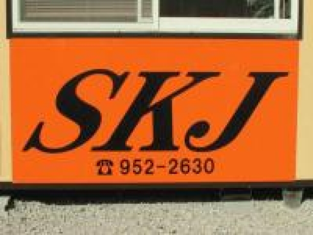 「SKJ」の大きな看板が目印です。色もオレンジと目立っております!在庫を道沿いに並べておりますので、気軽に見ていってくださいね♪