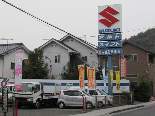 約50年の老舗、宮内自動車商会です。周りの街並みは大きく変わりましたが、石手寺と、そのそばにある当社はかわっておりません。お客様の笑顔の為に働いております。是非、一度お立ち寄りください。