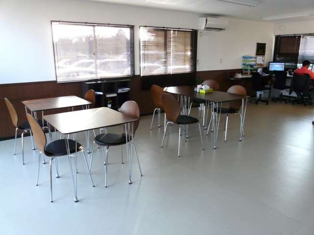 明るくオシャレなショールームで皆様のお越しを心よりお待ちしております。コーヒーを飲みながらゆっくり寛げます。たくさんの方がいらっしゃるのをお待ちしています!