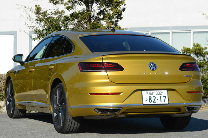 その名の通り、エクステリアは昨今多くのプレミアムブランドがラインアップするスポーティで流麗な4ドアクーペスタイルを採用。フロントマスクはグリルに水平に伸びるバーとヘッドライトがシームレスに繋がる新VWデザイン、よりパキッとしたプレスラインと抑揚が強いボリューム感あるフェンダー周り、曲線的なリア周り、更には20インチホイールの採用と、どこを取ってもデザインコンシャスに見えるが、実はリアゲートを備える5ドアハッチバック(VWではファストバックと呼ぶ)。つまりカッコいいけど実用性は損なわれていない……である。