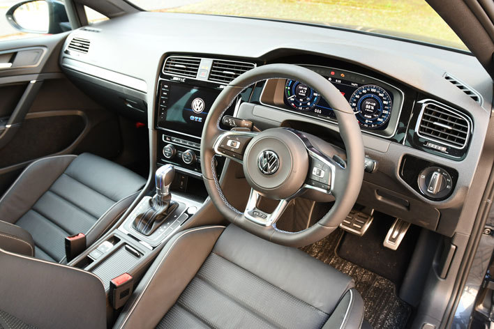 ゴルフGTEのボディサイズは全長が4265mm、全幅が1800mmだから、ほかのゴルフとほぼ同じ。それでも3代目までのゴルフは、全幅が1700mmを下まわる5ナンバー車だったから、今はかなりワイドになった。