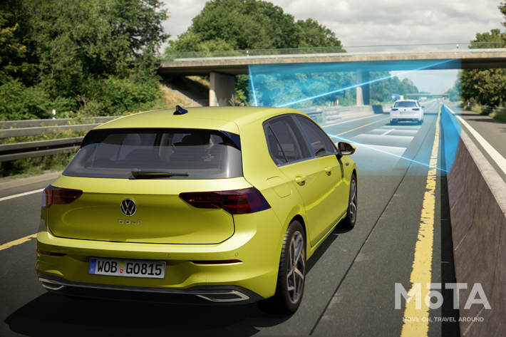 これは時速210km/hまでで、ACCとレーンアシストを使い道路をトレースする機能。欧州ではハンズオフは認可されないが、新型ゴルフ8はハンドル全周にタッチ式センサーを用いているのでステアリングに手が触れていれば機能は継続して作動する。
