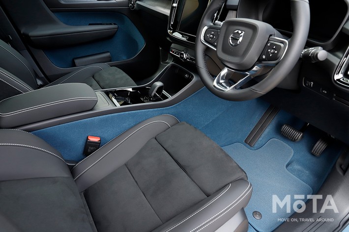 ボルボは電動化に加えて「レザーフリー」の宣言も行っているが、新型C40 リチャージのステアリングやシートなどは合成素材が採用される。実際に触れると触感の滑らかさに僅かな違いがあるが、言われなければ気が付かないレベル。加えて、カーペットやドアトリムにはリサイクル素材が使用される。実は日本では今も本革仕様の人気が高いが、それでも「やる!」と言ったら徹底する姿勢は、何ともボルボらしい。