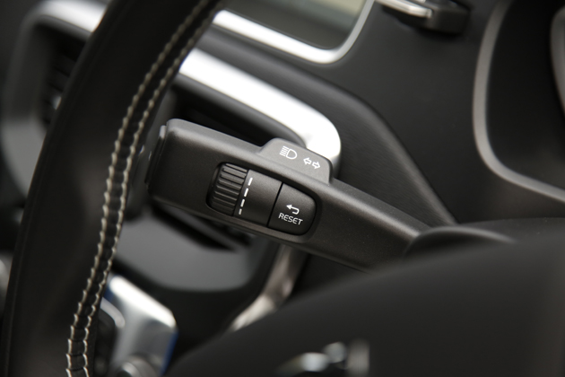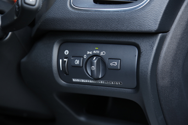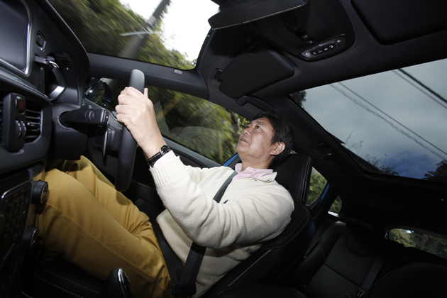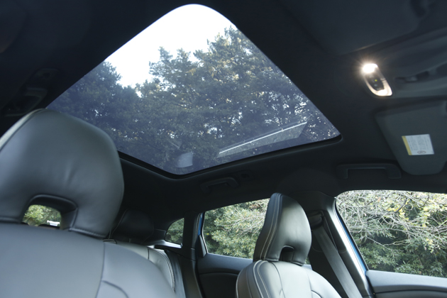 「パノラマ・ガラスルーフ」はオプション。V40は意図的にスポーティでタイトな室内空間となっているため、特に後席の住人にとっては頭上空間が広がり明るく室内を照らしてくれるガラスルーフは魅力的な装備である。