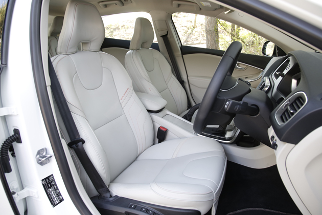前後席ともにクラスを超えた快適な掛け心地を誇る、チャコール/ブロンドカラーの専用本革シート。[ボルボ 新型 V40 Cross Country(クロスカントリー) T5 AWD(新パワートレイン「Drive-E」/2015年モデル/200台限定/ボディカラー:エレクトリックシルバーメタリック)]