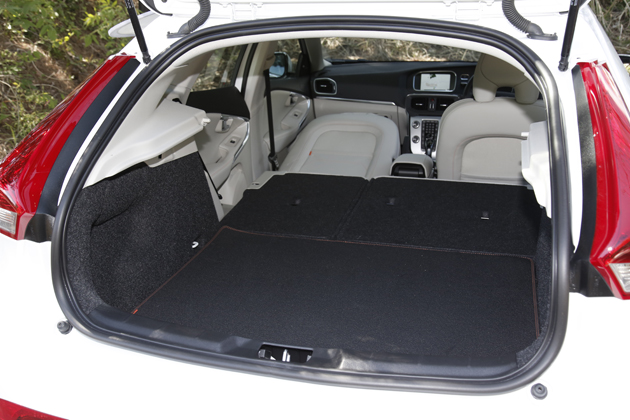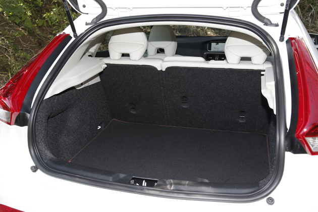 助手席まで前倒できるので、コンパクトサイズながら長尺モノも収納出来ちゃう、懐の深いところをみせる。さすがはエステート(ステーションワゴン)モデルの老舗だけのことはある。[ボルボ V40 Ocean Race Edition(オーシャンレースエディション/300台限定・特別仕様車/ボディカラー:クリスタルホワイトパール)]
