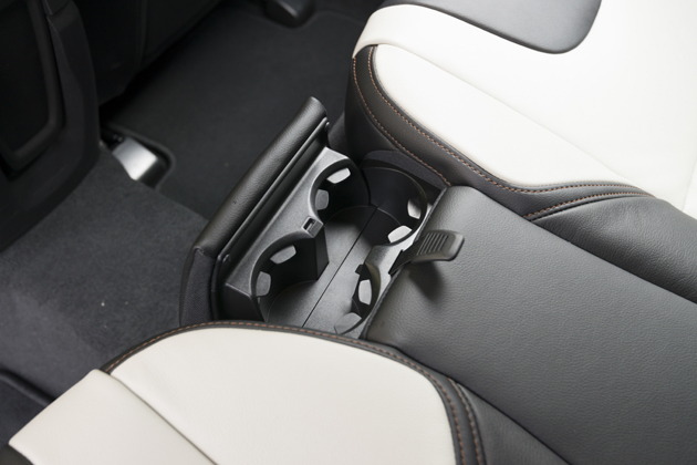 後席中央部に備わるカップホルダー。乗車定員は5名だが、通常は4シーターとして使うのが良さそうだ。