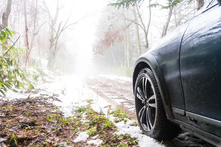 雪道を求めた我々取材班は、ふと目の前に現れた林道へと入り込んでみた。入り口こそ舗装が敷かれていたが、進むにつれていつしか道は未舗装に。雪と砂利と泥、そして轍には雨の流れるグラベルを進んでいく。高い車高のクロスカントリーだからこそ、それなりにラフな路面でも入っていける。SUVほどではないが、行動範囲の広さは間違いなく美点だろう。冒険とまで仰々しいものではないにせよ、ちょっとした非日常に踏み出すことも、このクルマと一緒ならば容易いはずだ。