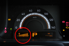 ご存知の方も多いかもしれませんが、それは、メーター内給油機マークの隣にある“三角マーク”です。
